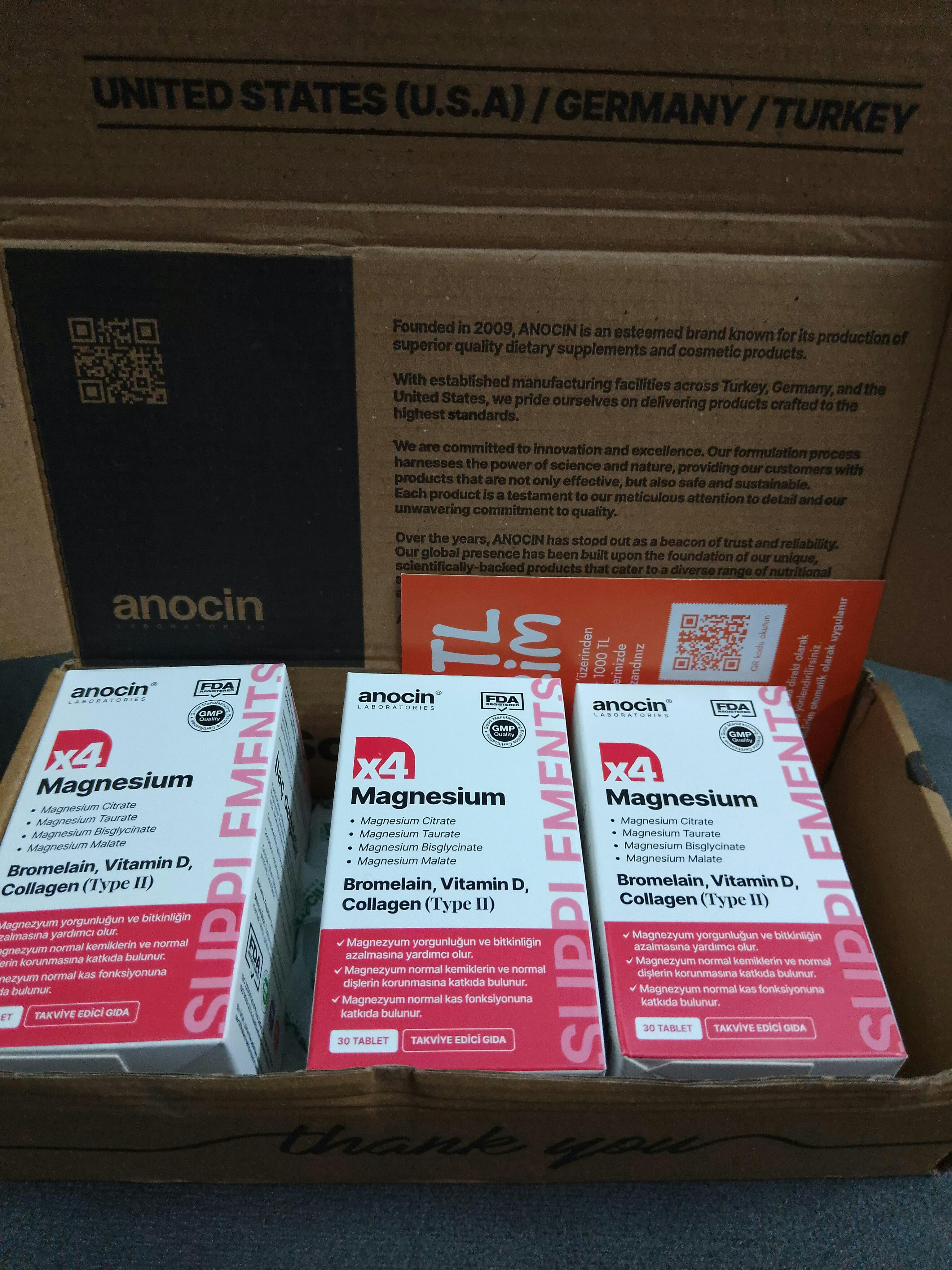 Magnezyum X4 - Sitrat, Taurat, Bisglisinat, Malat + Bromelain, D Vitamini, Kolajen (Tip 2) Kompleksi