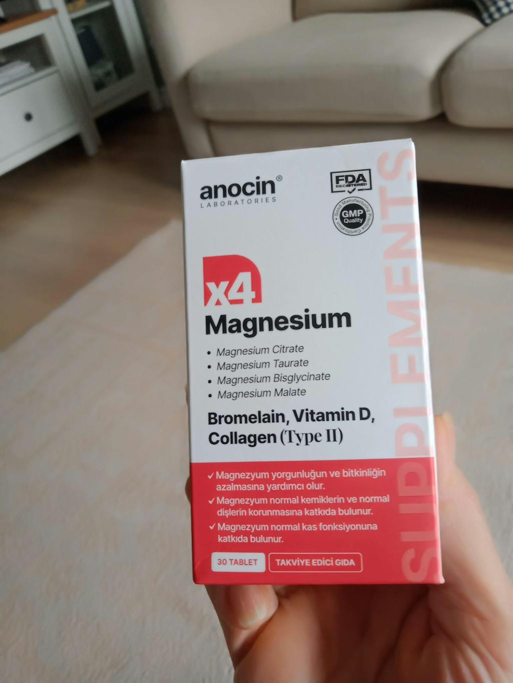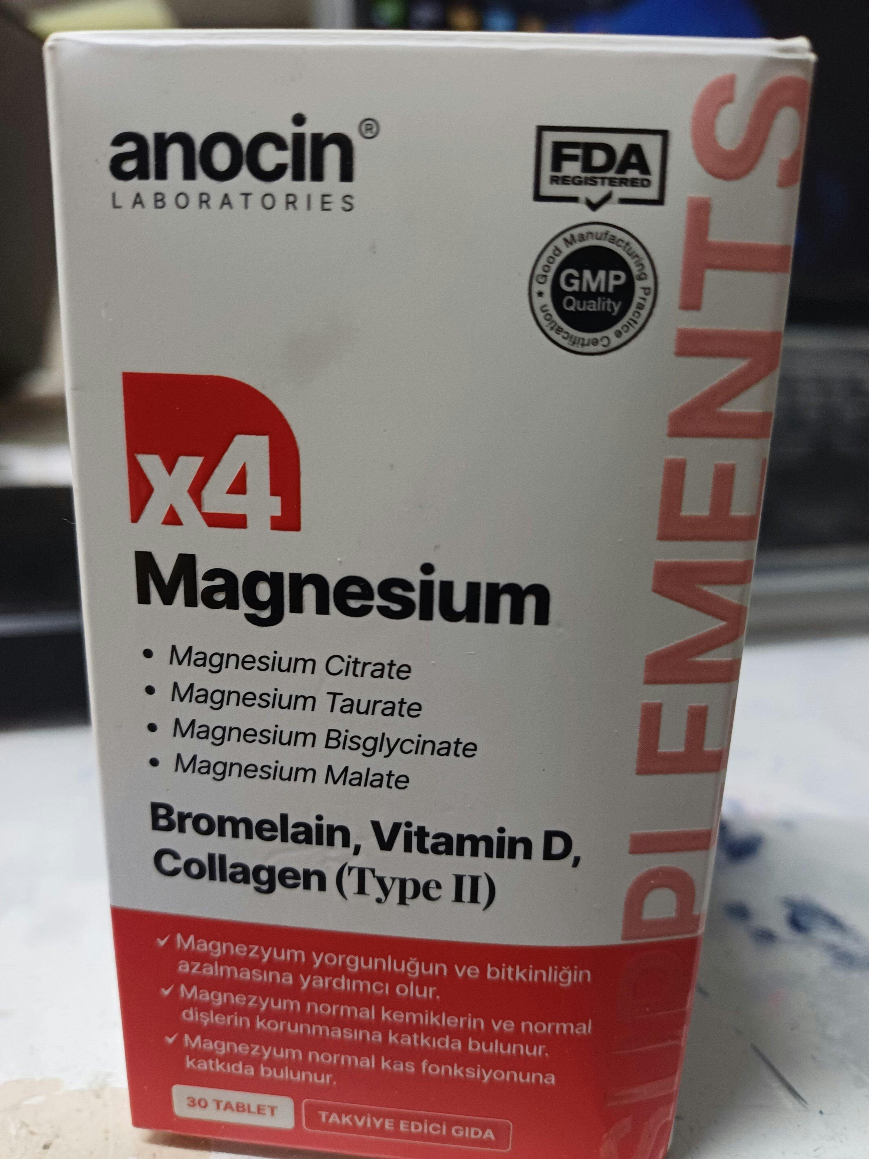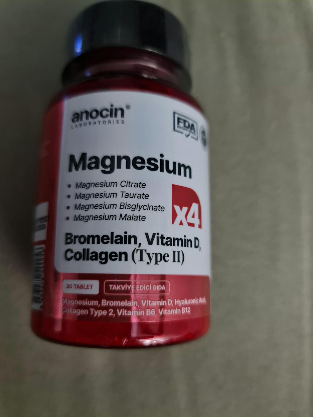 Magnezyum X4 - Sitrat, Taurat, Bisglisinat, Malat + Bromelain, D Vitamini, Kolajen (Tip 2), B6 Vitamini ve B12 Vitamini